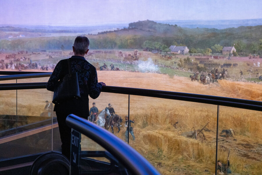 After maybe a quick snack at the museum’s Refreshment Saloon and Battlegrounds Café & Grille, meet your Licensed Battlefield Guide (Call 717-337-1709) in the lobby of the visitor center to begin a standard two-hour, or enhanced three-hour, battlefield tour. While it is not mandatory to hire a guide to tour the vast battlefield park (the National Park Service provides free maps for self-guided tours), it is highly recommended. Let an expert (who, with your permission, will operate your vehicle to take you over the battlefield) introduce you to the critical sites of the three-day fight—or craft a customized tour that fits your specific interests—and answer your questions along the way. (Note that licensed battlefield guide tours can also be arranged at the visitor center or the Gettysburg Heritage Center, call 717-334-6245; from May through August, tour requests must be made a minimum of five days before the date of requested tours.)