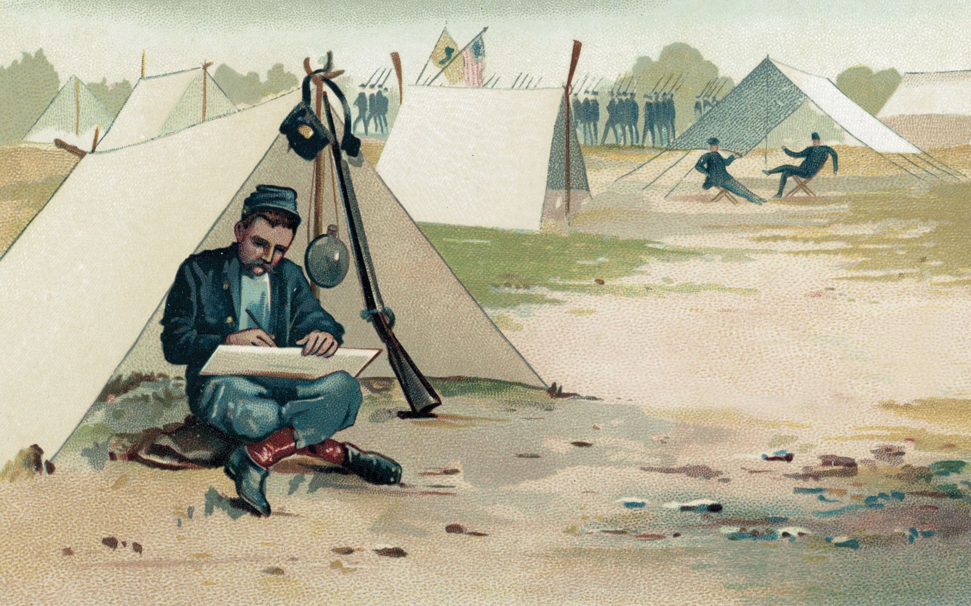 Comrades sent the soldiers’ personal effects home to their loved ones. They also took care of the business dictated by military regulations, handling matters regarding wages, ration allotments, sutler’s accounts, clothing allowances, receipts for effects, bounties, and final statements of the departed.