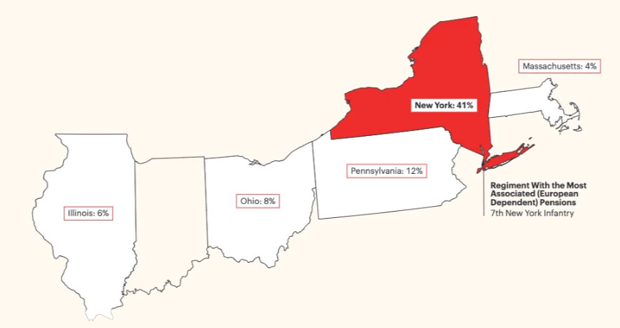 The Widows & Dependents in the Atlantic World Project run by historian Damian Shiels has been using the pension files of foreign-based widows and bereaved parents to explore the significant international flavor and impact of the conflict. The graphics shown here highlight information about dependent pensioners located in Europe—and the soldiers and sailors they lost during the Civil War.