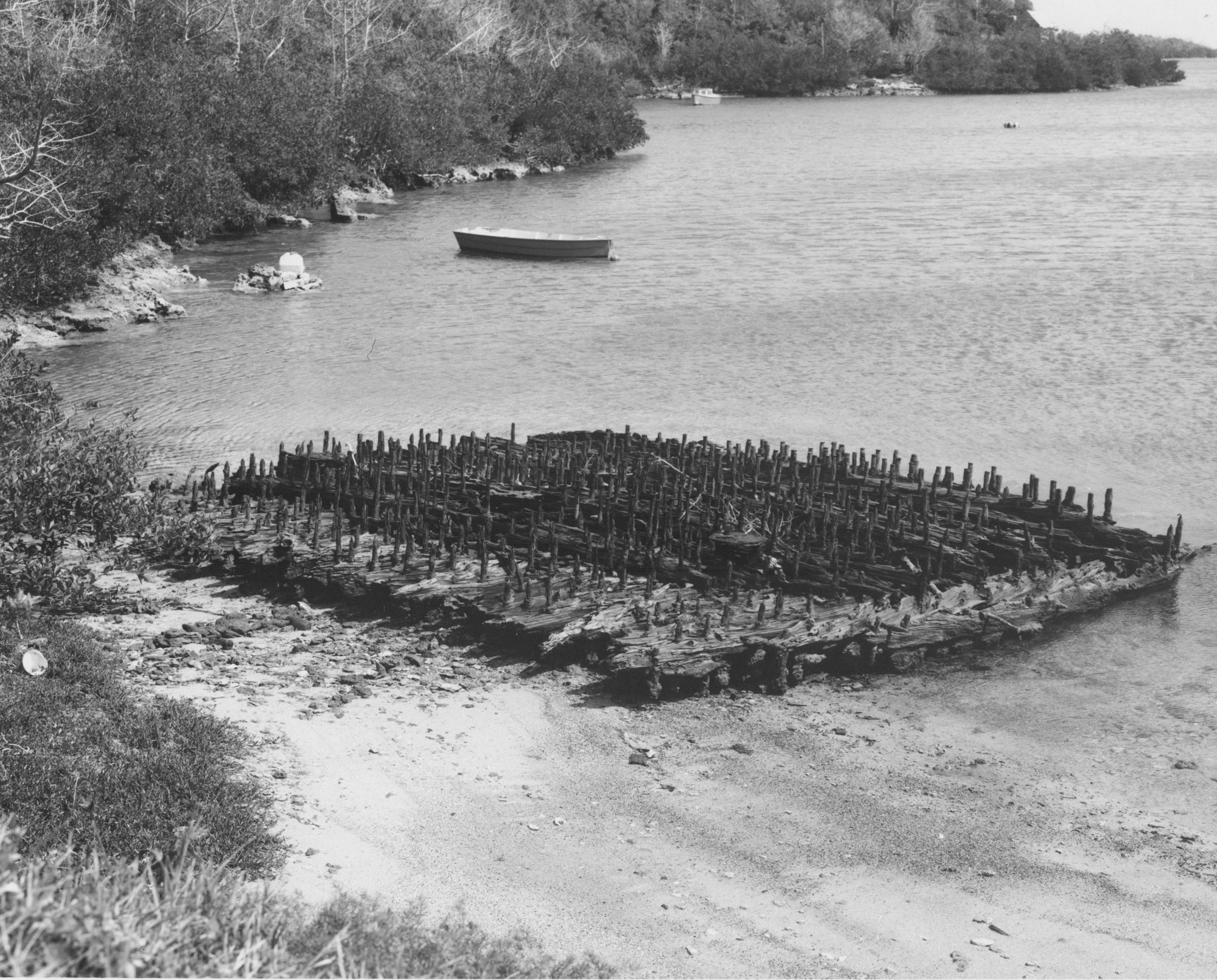 The Mustang Island raft was found after Hurricane Allen made landfall on the Texas coast in August 1980, with winds of at least 129 mph and a storm surge as high as 12 feet. The dramatic beach erosion that resulted exposed unusual disarticulated wreckage, broken into three principal sections spread over an area of about 35 feet by 38 feet. The wreckage was distinctive, very closely matching the heavily reinforced timbers of the Dolly’s Bay raft. The object was formally examined in the fall of 1985 by nautical archaeologists from the Corpus Christi Museum, the Texas Historical Commission, and the Institute of Nautical Archaeology at Texas A&M University, assisted by local volunteers. Although the Mustang Island object was in very poor condition, the team concluded that without doubt it was a Civil War–era raft designed to survive contact with naval mines. There was some initial speculation that it might date from a small action undertaken by the Union navy against Corpus Christi in 1862, but there was no clear evidence of similar rafts being used there, and, in fact, rafts of that type do not appear in official reports until discussion of the Ericsson rafts used at Charleston in April 1863. The team concluded that the available evidence clearly suggested that the Mustang Island object was one of the latter rafts, washed ashore on the Texas coast and buried in the dunes for decades before being discovered after Hurricane Allen in 1980.