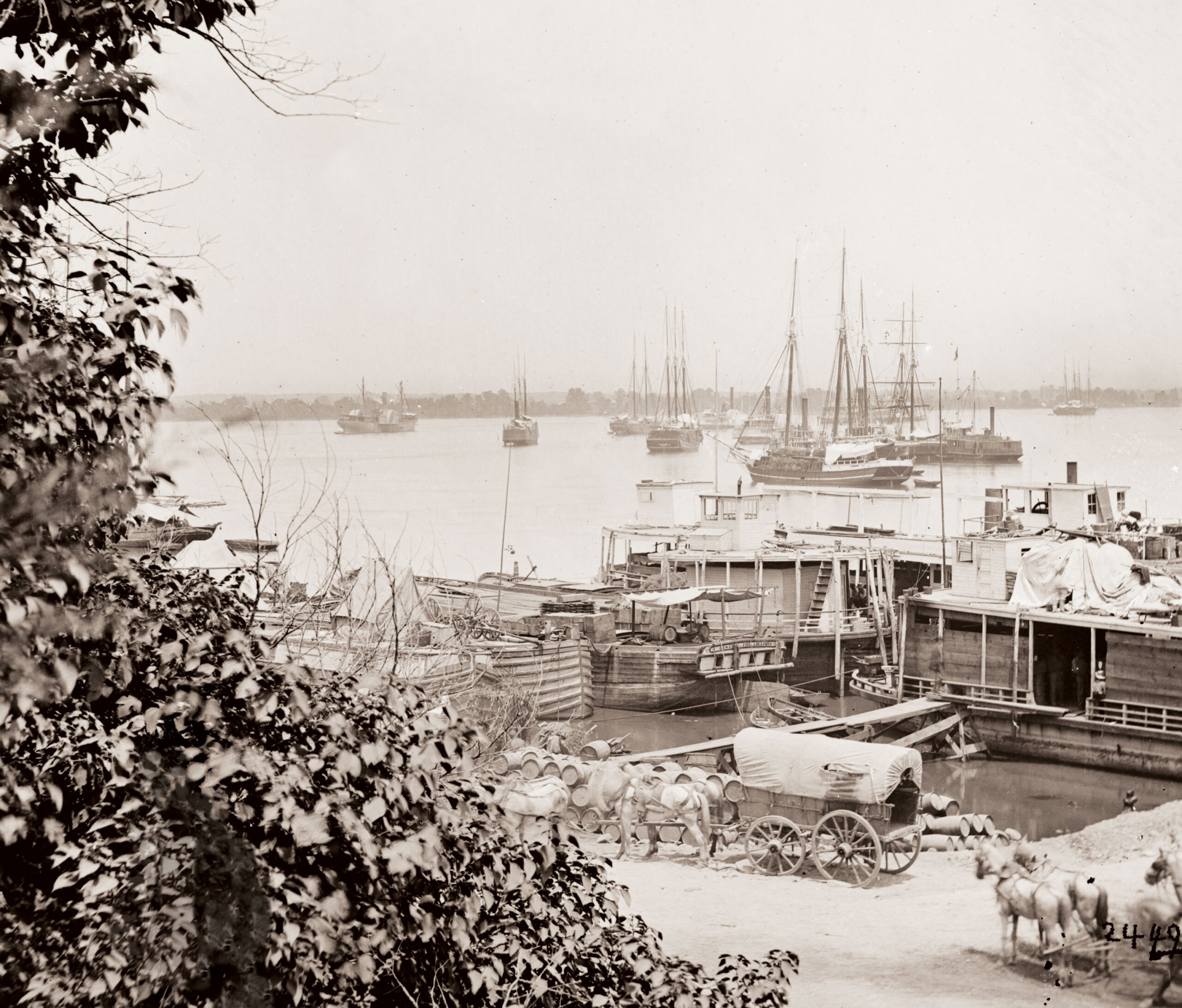 Library of CongressWagons stand ready to receive supplies at the wharf at City Point, Virginia, the site of Ulysses S. Grant’s headquarters during the Siege of Petersburg—and where Abraham Lincoln paid a brief but memorable visit in June 1864.