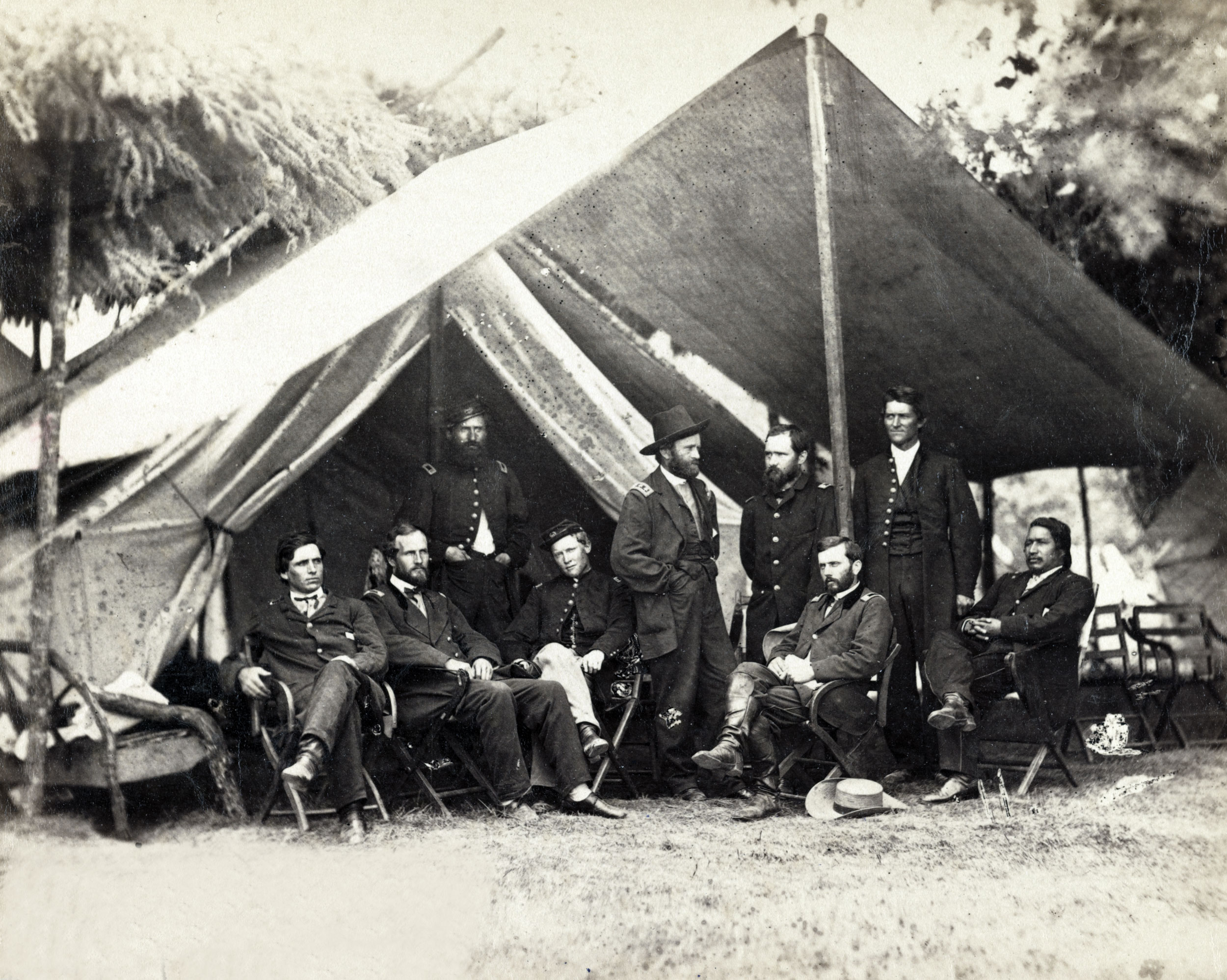 Library of CongressIn May and June 1864, Ulysses S. Grant (shown here with his staff in the summer of 1864), the Union army’s newly minted general-in-chief, formulated several plans to defeat Robert E. Lee’s Confederates in Virginia. After the third of them failed, Grant received an unexpected visitor in the person of Abraham Lincoln.