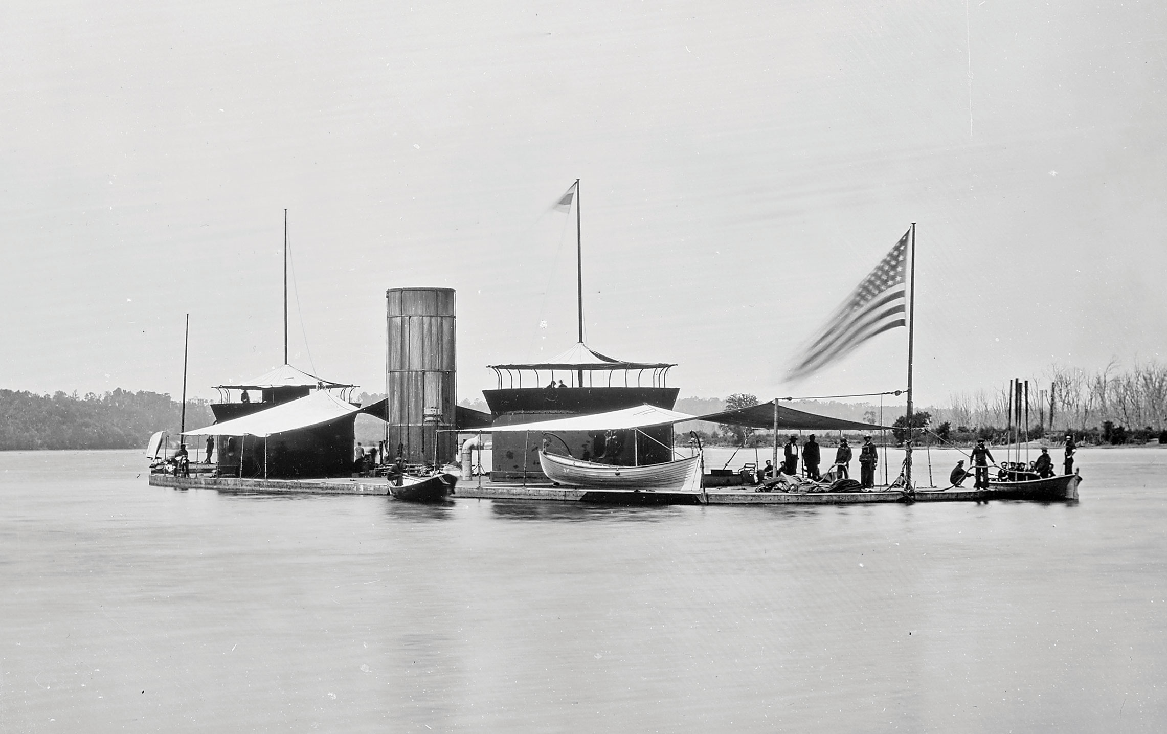 Library of CongressAmong the stops on Lincoln’s schedule on June 22 were a brief visit to one of the more technologically advanced monitors in the Union fleet, USS Onondaga (above), and dinner at a spot in Maryland called Point of Rocks, on the Appomattox River.