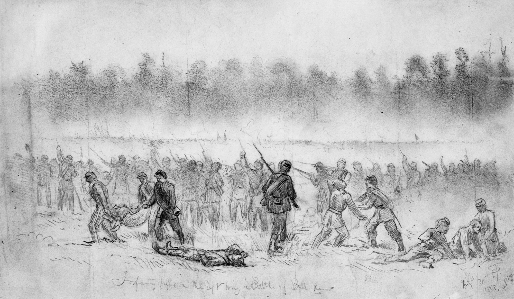Library of CongressAfter briefly rejoining his regiment, Hunter got swept up in the “grand final charge” of the Confederate reserves, who swept their enemy’s forces from the field. Above: Alfred Waud’s sketch of Union soldiers being overwhelmed by Longstreet’s troops at Second Manassas.