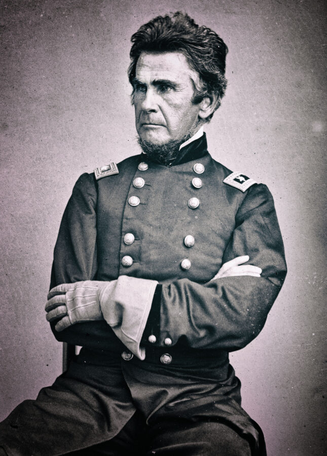 The desired promotion to brigadier general came a few days later, backdated to his first lobbying in November. With it came the district command he had coveted, encompassing the entire state of Indiana, and no sooner did Carrington assume those duties than he betrayed a tendency to panic. He credited exaggerated accounts of clashes between soldiers and ostensibly disloyal civilians that he amplified further before relaying those tales to Washington. When a force of Rebel cavalry seemed to threaten Indiana from Kentucky, Carrington advised having a division sent from the Army of the Potomac, prompting his department commander to assure him that he need not be “scared.” Major General Ambrose Burnside assumed command of the Department of the Ohio soon thereafter, and he came with General-in-Chief Henry Halleck’s caution about Carrington’s imprudence. Carrington helped corroborate Halleck’s opinion with a wild report that 100,000 arms had recently been delivered in Ohio and Indiana, presumably for treasonable purposes. When his alarms about secret societies turned almost frantic, Burnside removed him from district command, which he had held for only four weeks.26