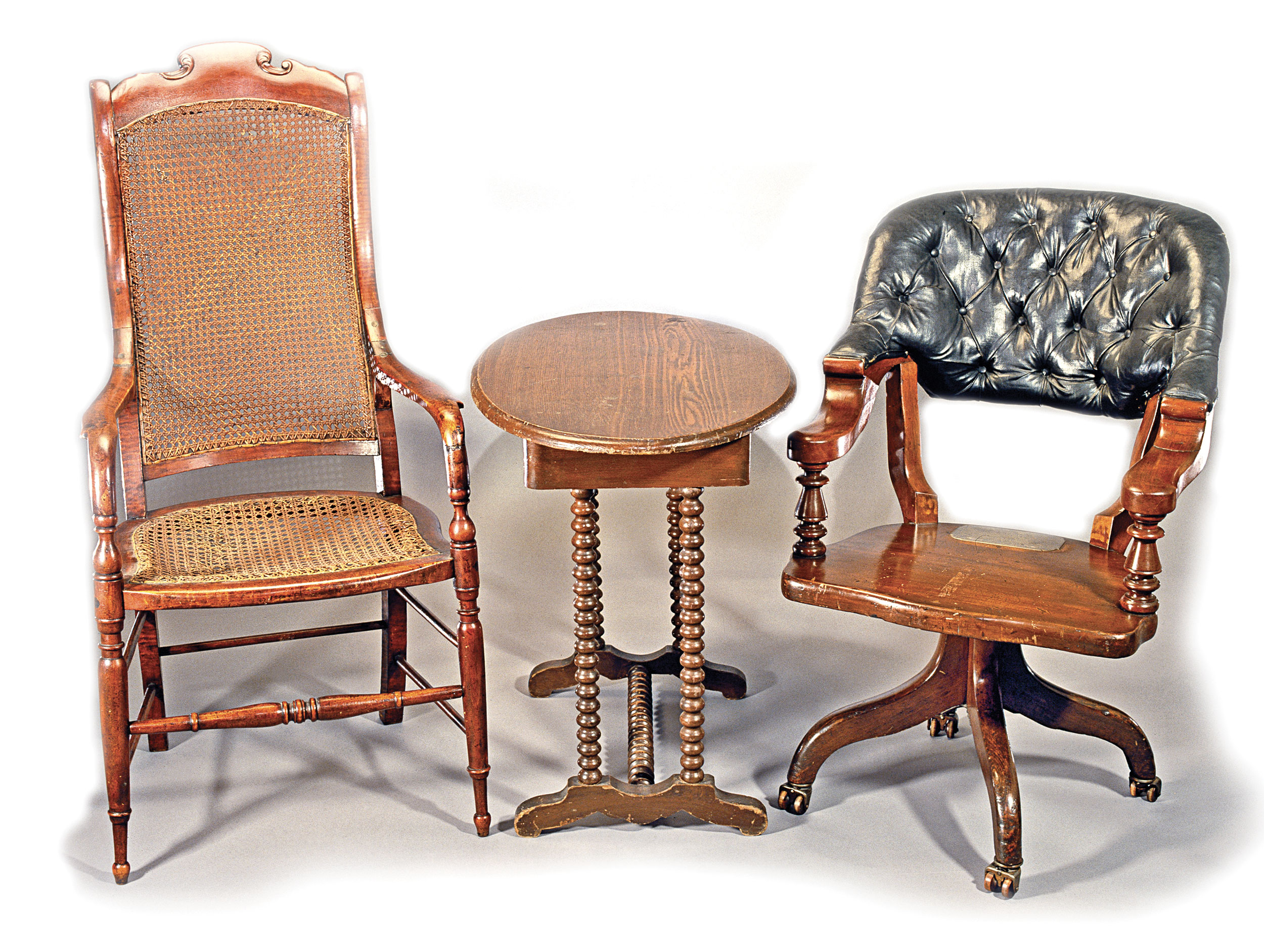 When, on April 9, 1865, Robert E. Lee and Ulysses S. Grant met in the parlor of Appomattox Court House resident Wilmer McLean’s home to discuss the terms of Confederate surrender, they used the chairs—and sat at the table—shown here. After Grant, who used the chair on the right, offered his terms, which Lee accepted, the generals departed. Noting the significance of the event, several Union officers took pieces of McLean’s furniture as souvenirs, including these chairs. Major General Philip Sheridan took the table, which he later presented to the wife of Major General George Armstrong Custer. By 1915, each of the items had been donated to the Smithsonian Institution, where they are reunited today.