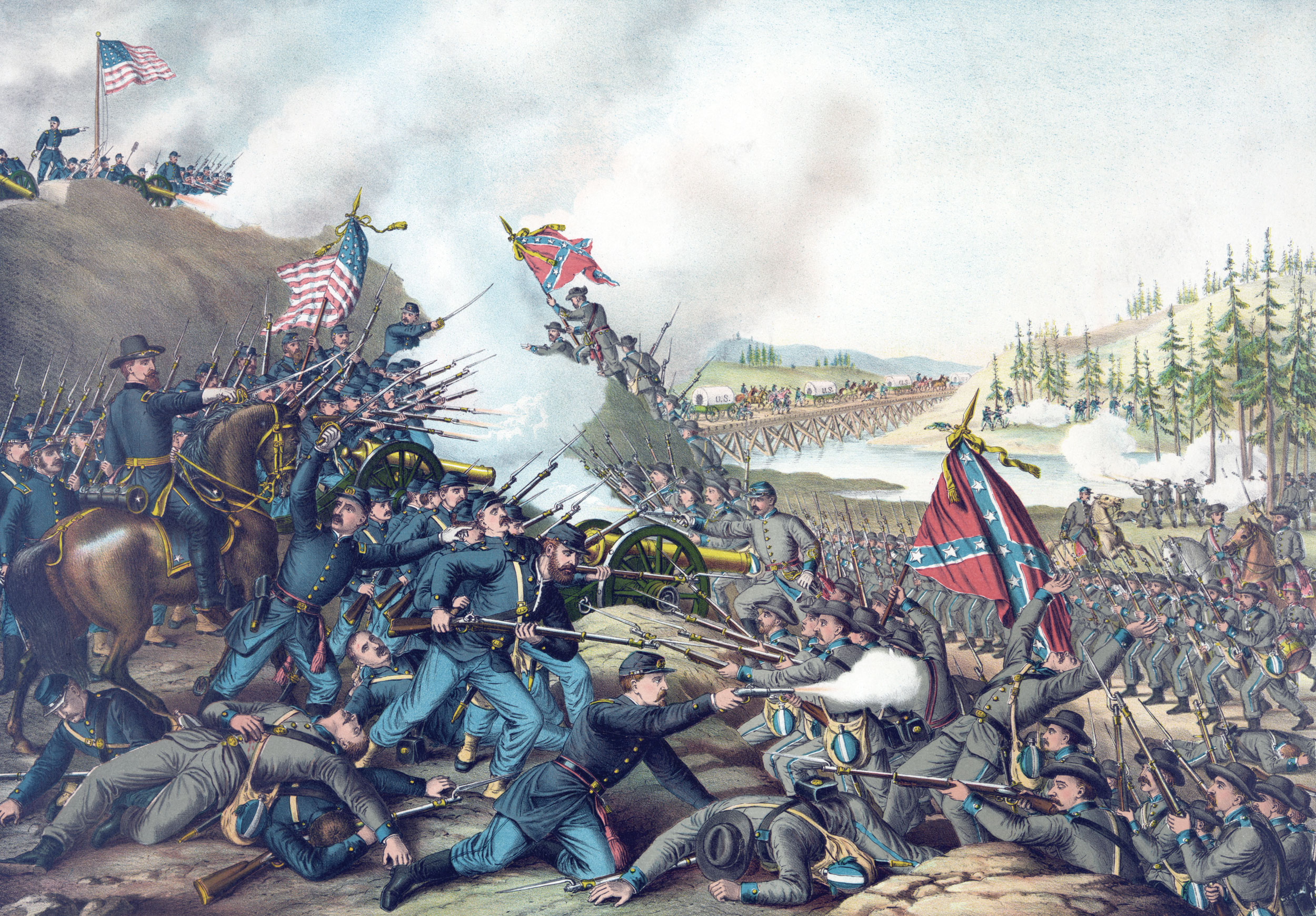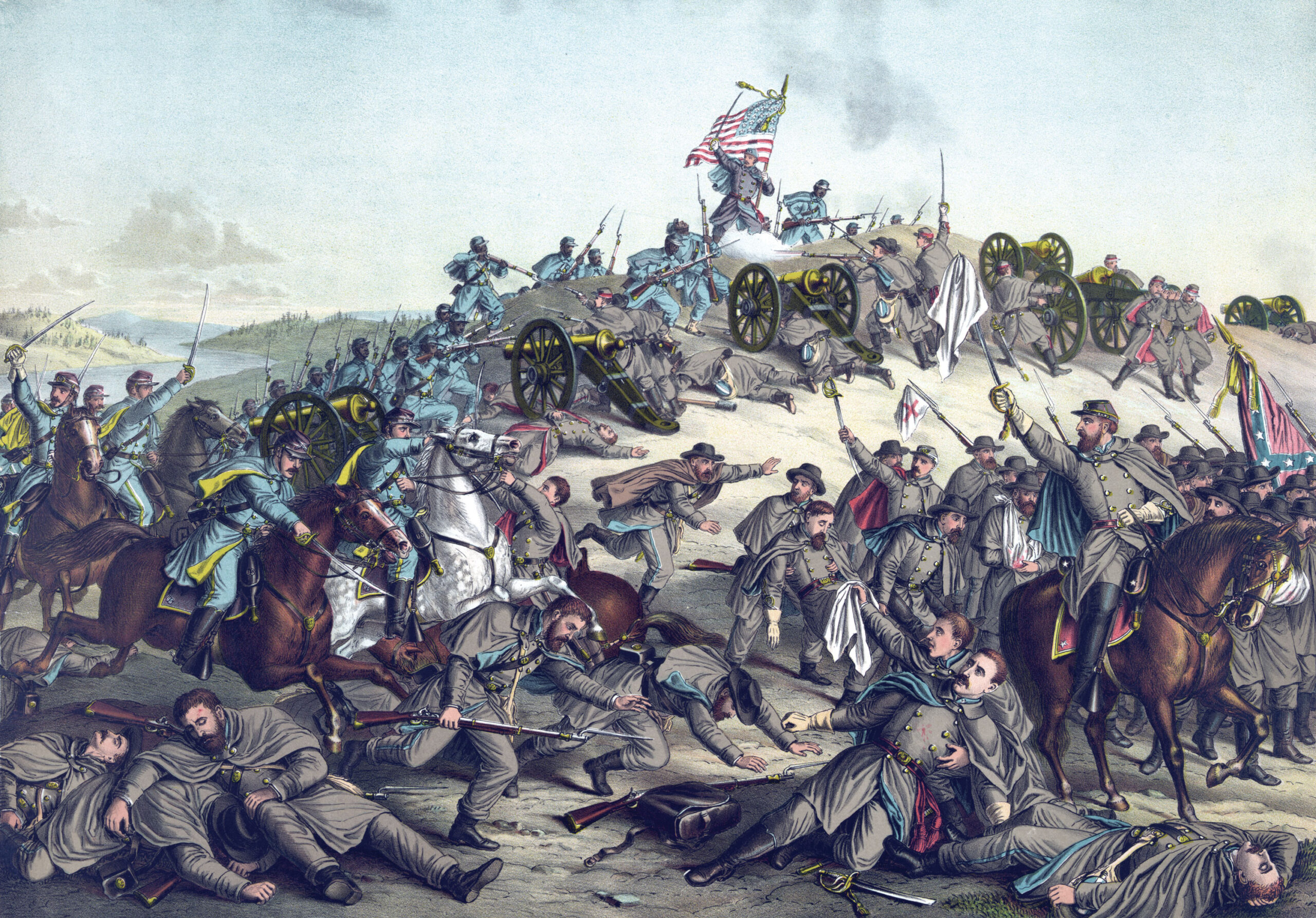 Library of CongressWhile historically inaccurate, Kurz & Allison’s chromolithograph of the Battle of Franklin does allude to the ferocity of the fighting, which was hand-to-hand in many places.