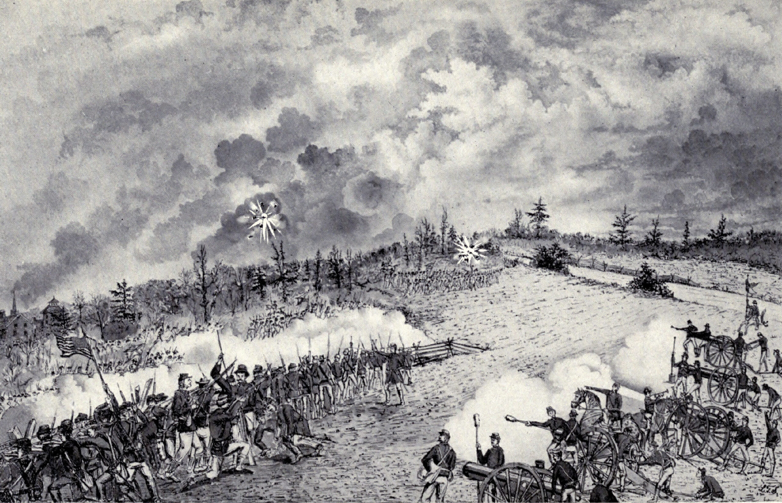 The Retreat from Pulaski to Nashville, Tenn. (1909)Union and Confederate troops clash at Spring Hill on November 29, 1864. Confederate command confusion that night helped allow the Union force to slip away and resume its march toward Franklin. Emerson Opdycke’s brigade, which formed the hindmost position of the Union rearguard, would spend an exhausting night and early morning keeping their retreating comrades moving.