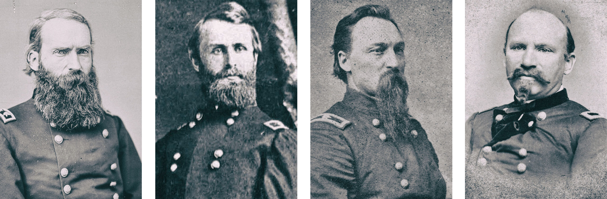 Library of Congress (Stanley); USAMHI (Cox); Tom Glass (Wagner); Missouri Historical Society, St. Louis (Conrad)Left to right: Major General David S. Stanley, Brigadier General Jacob D. Cox, Brigadier General George D. Wagner, and Colonel Joseph Conrad.