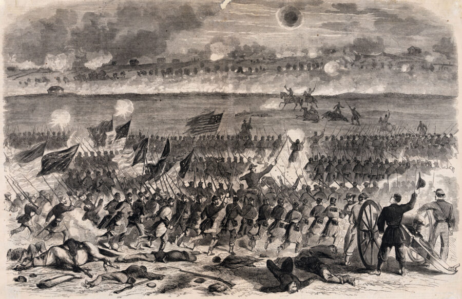 She needn’t have worried. After bumbling around the State House, Alcott was told the governor was not there and whom she needed to see, and after a lengthy back-and-forth through the streets of Boston, she was finally able to procure her pass. She dined with her sister Anna and brother-in-law, John, who then escorted her to the train station for her free ride to New London. Meanwhile, far away to the south, the Army of the Potomac was preparing an attack the next morning on Confederate positions overlooking a town in Virginia called Fredericksburg. The resulting battle would have a big impact—including on Alcott’s nursing work.