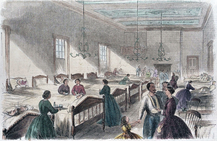 Ropes had looked forward to Alcott’s arrival. She viewed her as “the prospect of a really good nurse, a gentlewomen who can do more than merely keep the patients from falling out of bed, as some seem to consider the whole duty of a nurse.”7 On her first day, Ropes gave Alcott charge of Ward I, containing 40 beds and 20 patients. The nurse previously in charge had departed after being accused of theft.