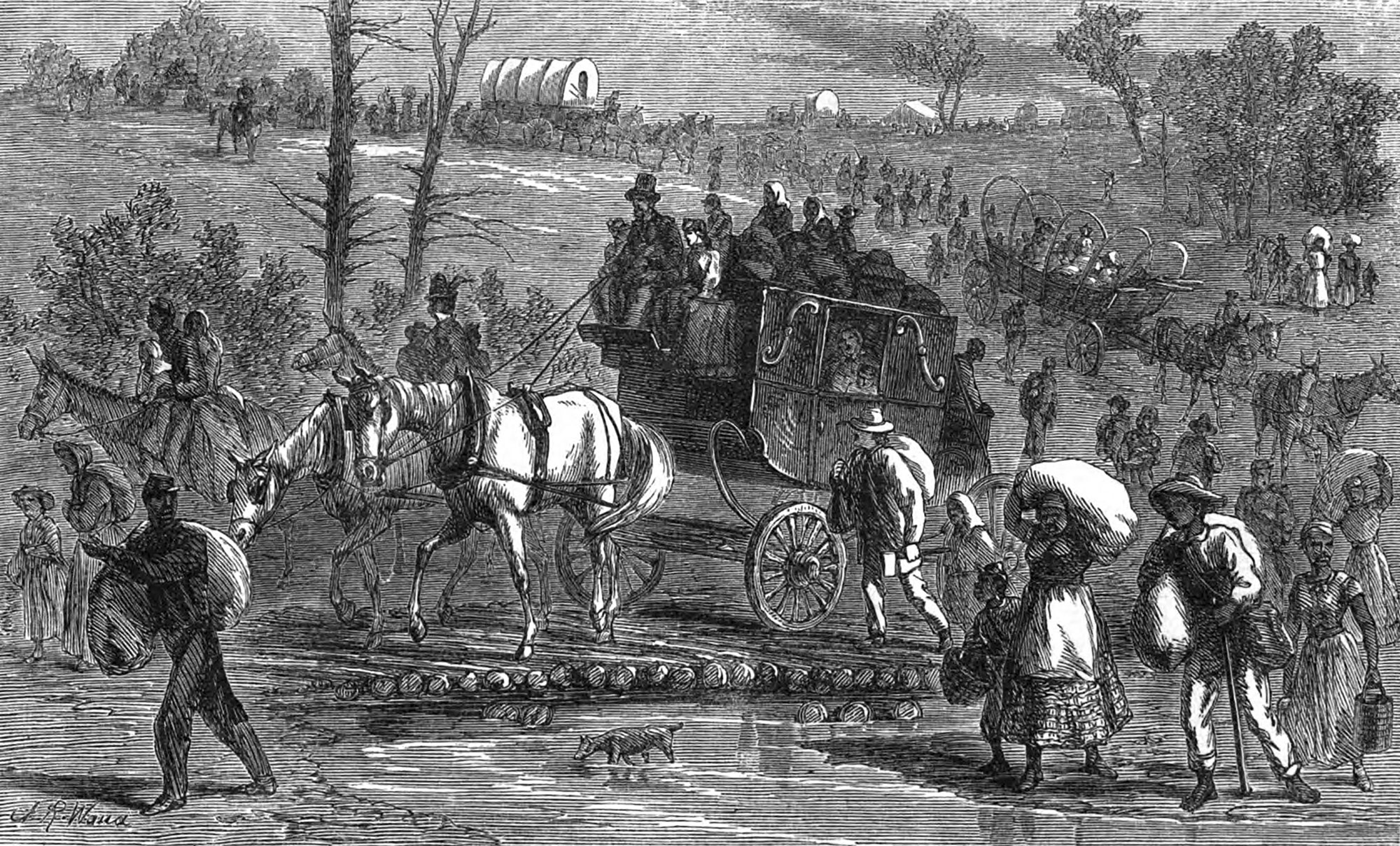 Not long thereafter Davis made his first official move. Orders came down from the general’s staff barring these refugees (women specifically) from riding along with the army in army wagons, and Davis then prohibited all but a small number of them—those serving as valets or personal servants to soldiers—from riding horses or mules. The message, which he couched in the language of military resources and preparedness: offer no implicit invitations and remove anything that might make following the army easier.